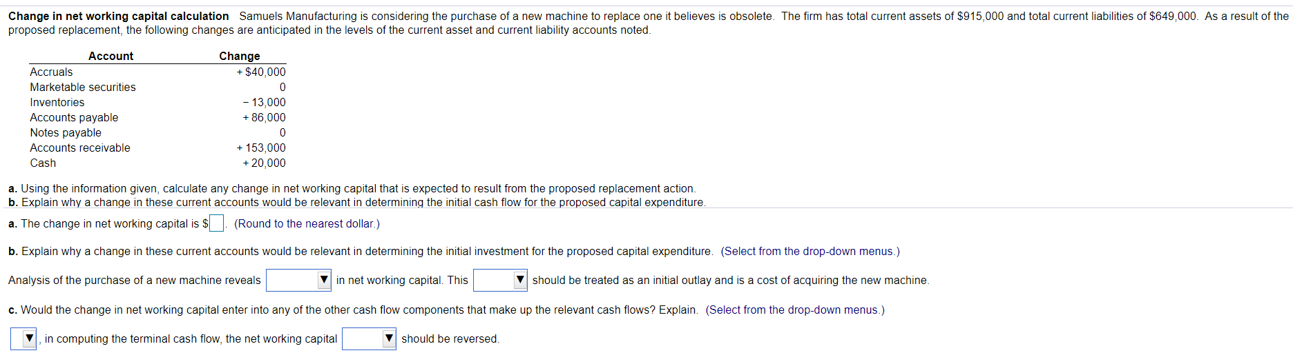 Solved Change In Net Working Capital Calculation Samuels Chegg Com